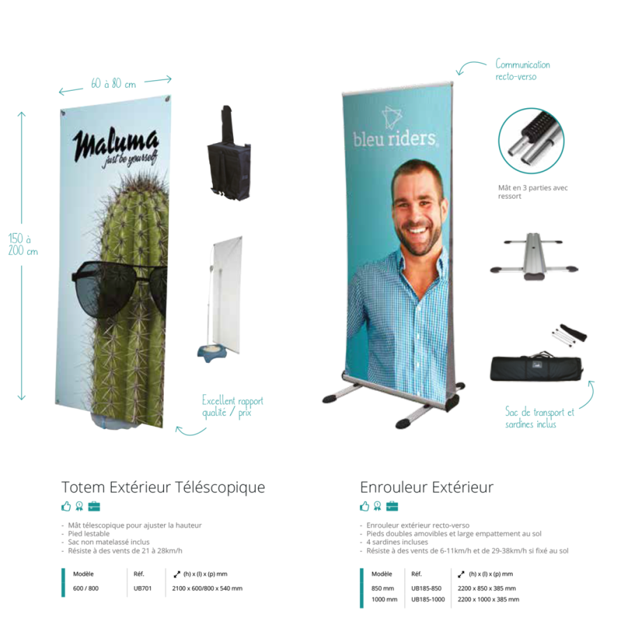 Roll up - comptoirs - stands pliables - totems sur pieds...